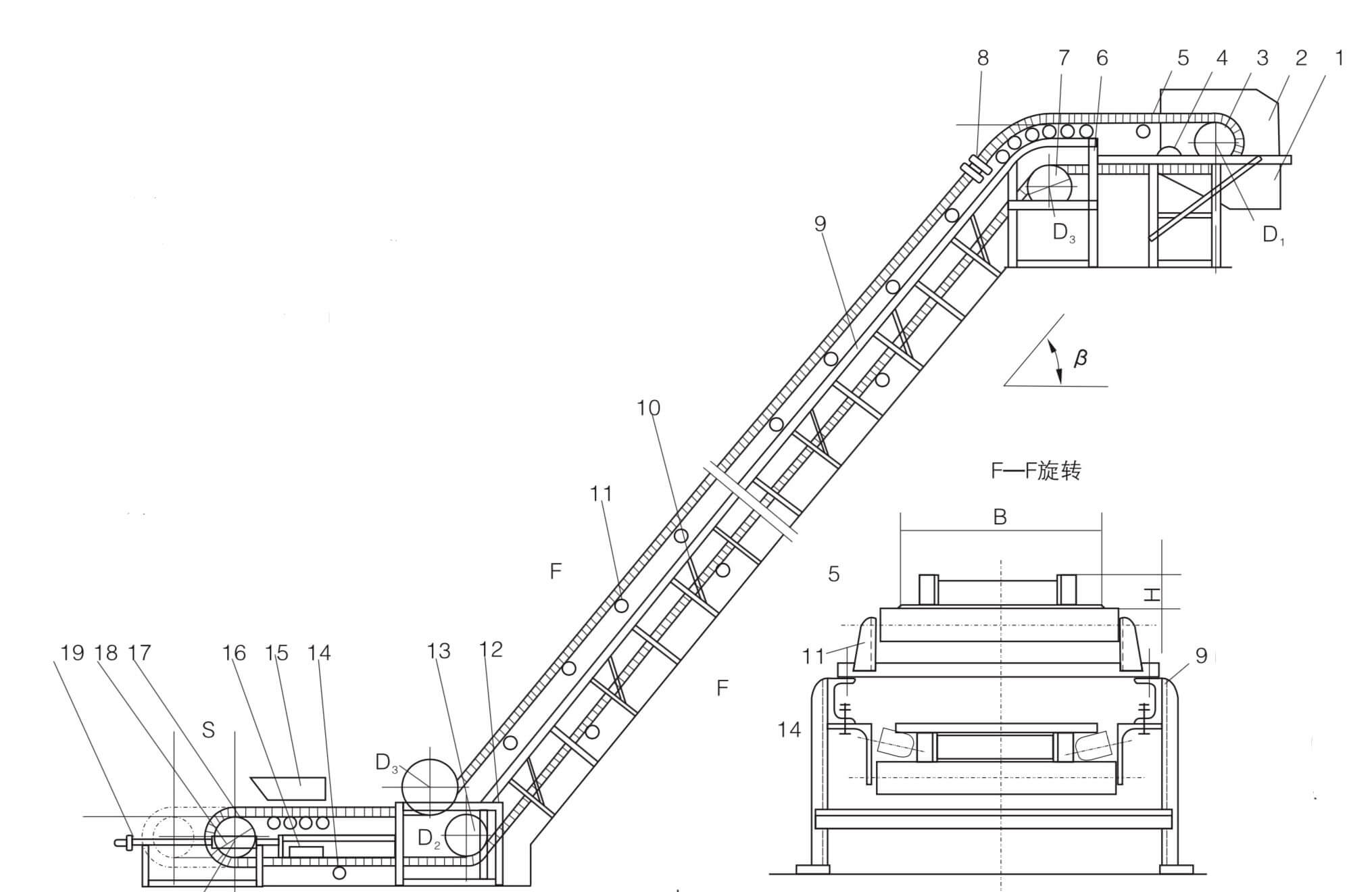 C Коробчатый наклонный конвейер с боковой стенкой для большого угла основных технических параметров er s